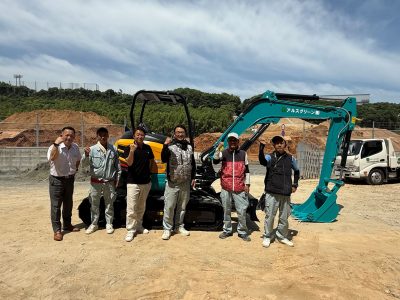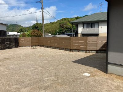 新築外構の植栽周りを施工しました! コルジリネの周りに割栗石を配置。